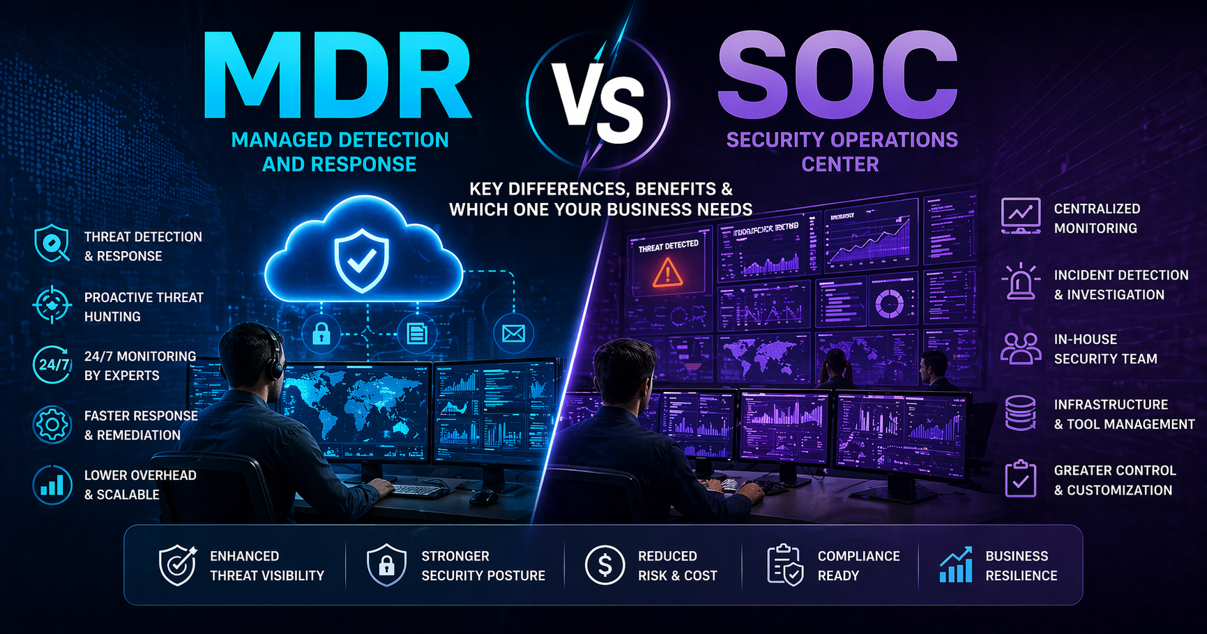 Understanding the differences between MDR vs SOC allows businesses to select the model that best fits their security requirements, operational capabilities, and budget.